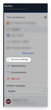 You can manage your personal information and security settings on the Account page in OpenHEXA.